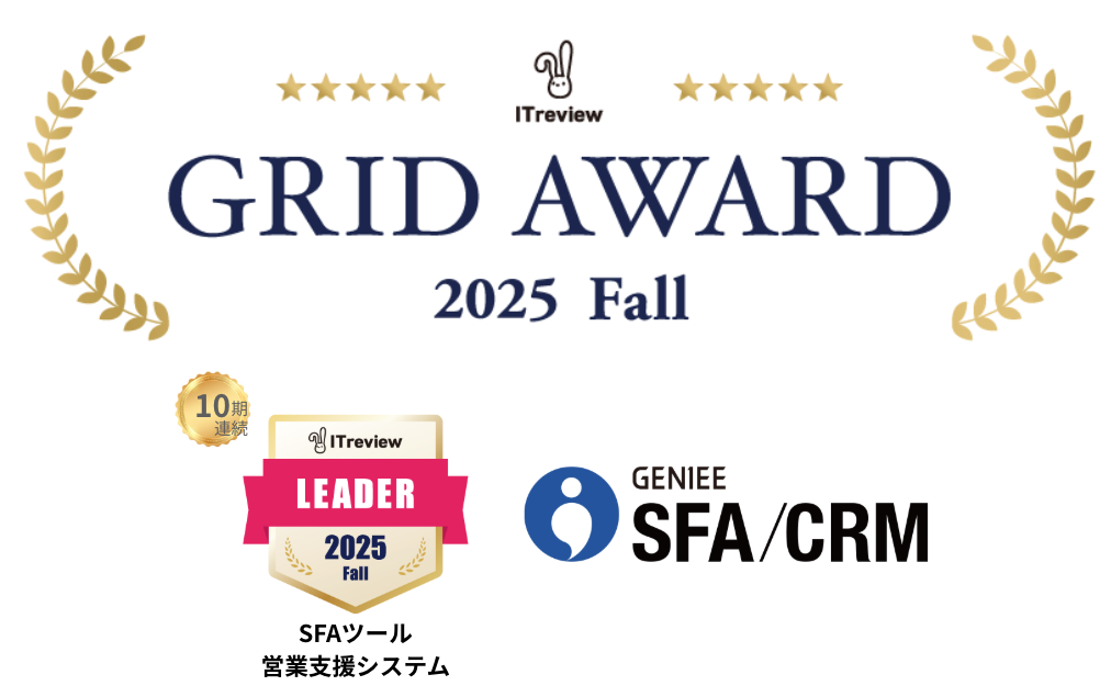 株式会社ジーニー(本社:東京都新宿区、代表取締役社長:工藤 智昭、以下ジーニー)が開発・提供する営業管理ツール「GENIEE SFA/CRM」が、アイティクラウド株式会社が運営するIT製品レビュープラットフォーム「ITreview」において、満足度、認知度ともに優れた製品であると評価され、「ITreview Grid Award 2025 Fall」のSFAツール(営業支援システム)部門で最高位の「Leader」に10期連続で認定されました。
