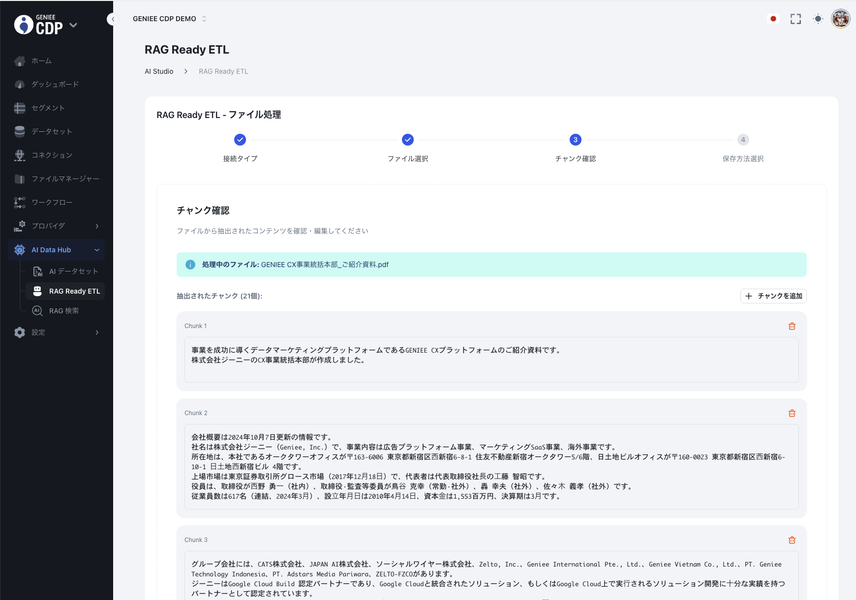 ② RAG Ready ETL(Extract, Transform, Load)機能